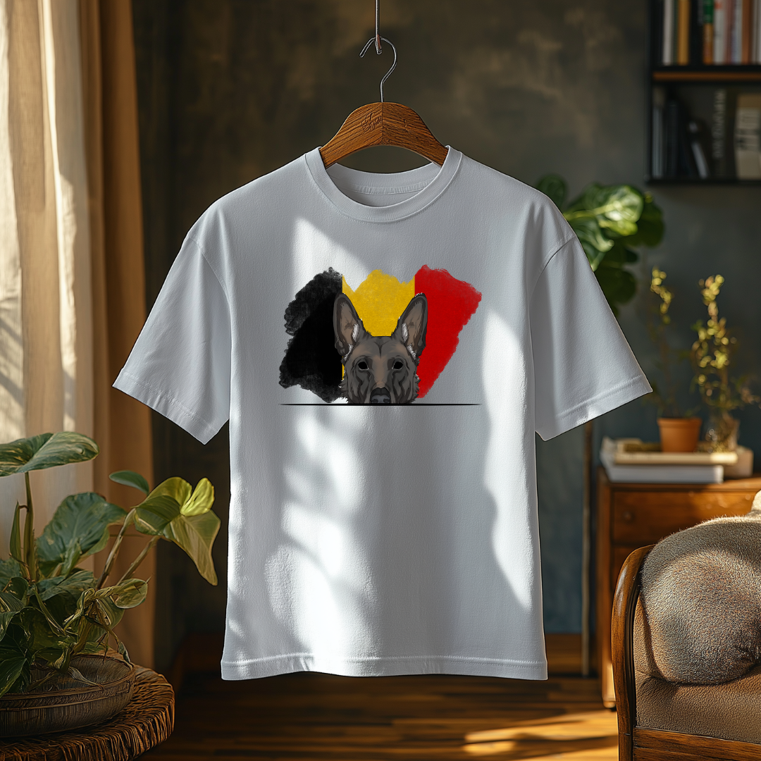 "A proud Belgian protector - this tee features the Malinois with its national flag, honoring its elite heritage."